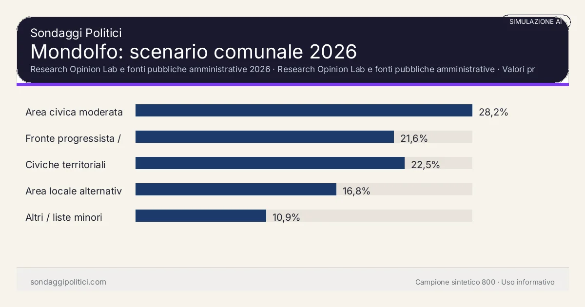 Come simulazione AI locale sulle amministrative 2026 a Mondolfo: utile per orientarsi, non come sondaggio reale o previsione certificata.