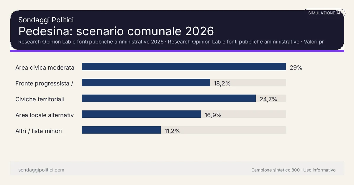 Come simulazione AI locale sulle amministrative 2026 a Pedesina: utile per orientarsi, non come sondaggio reale o previsione certificata.