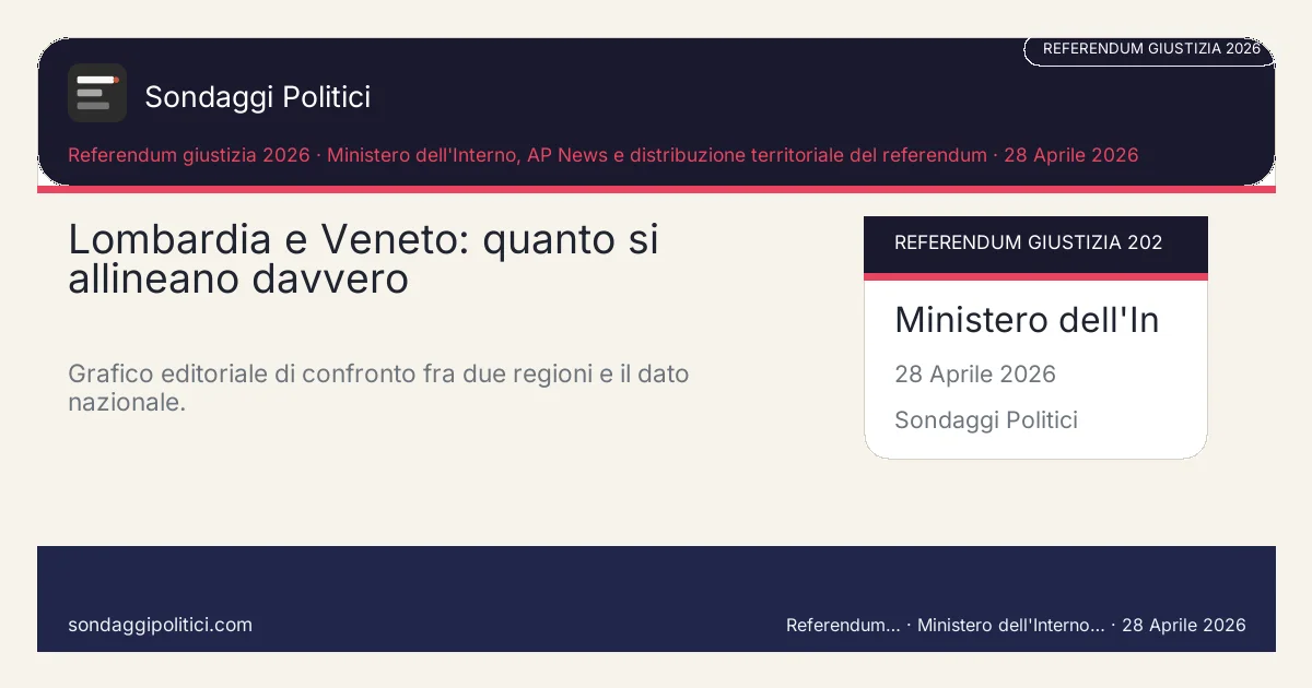 Lombardia e Veneto hanno offerto alla riforma il terreno migliore, ma proprio questo rende ancora più interessante capire perché il loro sì non sia diventato linguaggio nazionale. Nella geografia del referendum sulla giustizia, Lombardia e Veneto non sono stati territori rumorosi come Lombardia, Veneto o Campania, ma proprio per questo meritano attenzione. la Lombardia ha chiuso con 46.44% di No e 63.76% di affluenza, mentre il Veneto è arrivata a 41.59% di No con 63.47% di affluenza. Il quadro si ricostruisce passando dal portale del Ministero dell’Interno, dal riepilogo nazionale di AP News e dalla tabella regionale dedicata al referendum su Wikipedia.